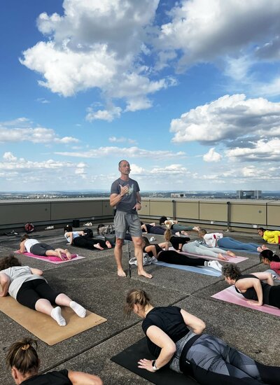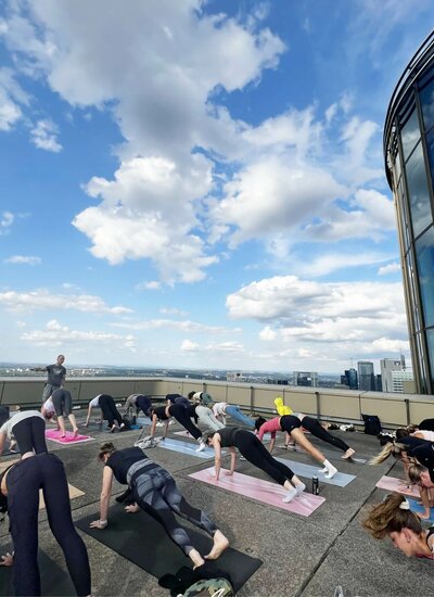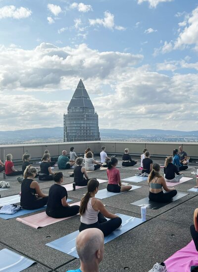 Frankfurt feierte Premiere: Beim ersten Rooftop Day der Stadt begeisterte der TOWER185 mit Yoga in 200 Metern Höhe. Zwei Sessions mit atemberaubendem Ausblick – restlos ausgebucht und voller Energie. Ein Moment, den Frankfurt so noch nicht erlebt hatte.