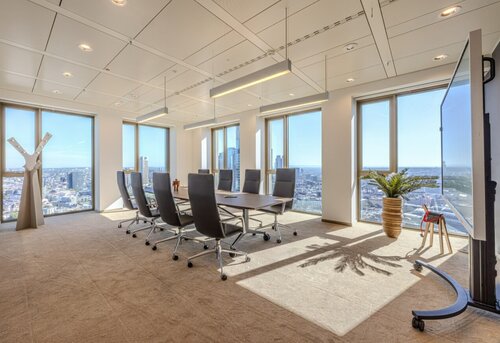 Die Idee hinter dem neuen Servicebaustein ist genauso simpel wie zeitgemäß: Unternehmen brauchen heute mehr denn je flexible Räume für unterschiedliche Meeting-Formate. Ob Team-Workshop, Networking-Event oder Pressekonferenz – im studio185 stehen sechs Räume bereit: mit moderner Technik, hochwertiger Möblierung und flexiblen Set-ups. Von Lounge bis Long-Table, von agil bis klassisch – immer mit spektakulärem Blick über die Frankfurter Skyline.