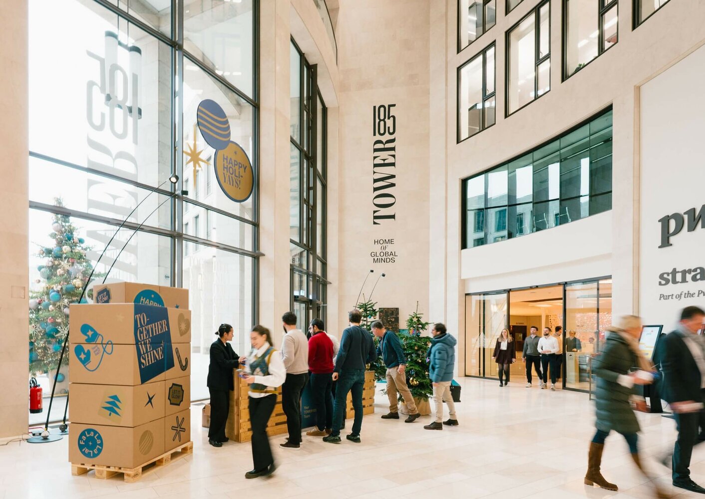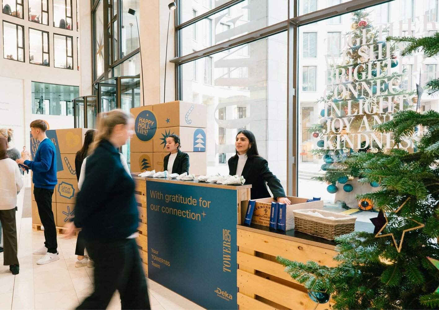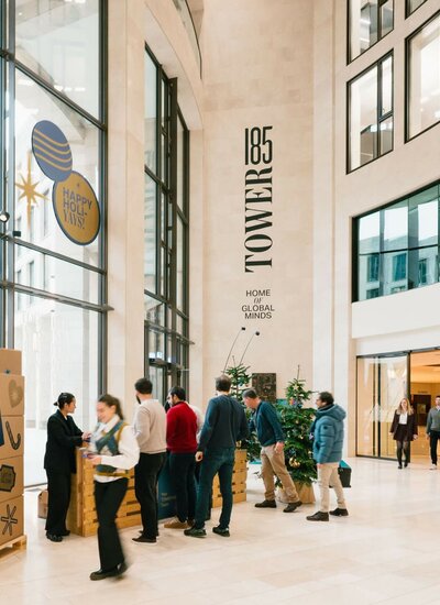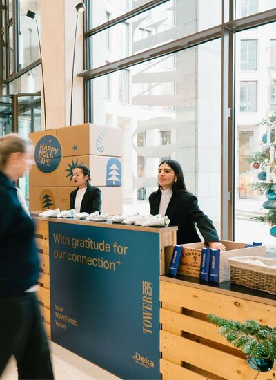 Die vorweihnachtlichen Wochen im TOWER185 sind für viele Mieterinnen und Mieter längst ein freudig erwartetes Highlight des Jahres – und auch 2025 brachten wir das Haus zum Leuchten: mit stimmungsvoller Dekoration und einer weihnachtlichen Geschenke-Aktion.