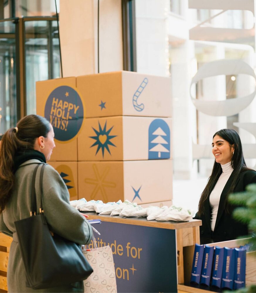 Nun ist sie da, die Zeit des Danke-Sagens – und der wertvollen Momente, in denen man innehalten und teilen möchte. Herzstück im TOWER185 ist die jährliche Nikolaus-Aktion: Am individuell gestalteten Geschenk-Spot in der Lobby waren die ausgesuchten Give-aways bereits früh vergriffen. Unter dem Motto „With gratitude for our connection“ wurde die Aktion zugleich zu einem ersten, charmanten Teaser auf die kommende Smart-Building-Transformation, die 2026 für alle erlebbar wird.