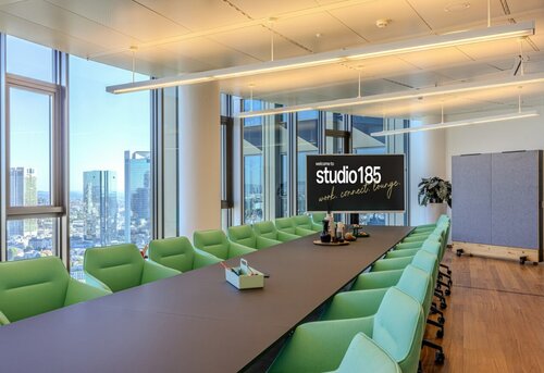 Die Idee hinter dem neuen Servicebaustein ist genauso simpel wie zeitgemäß: Unternehmen brauchen heute mehr denn je flexible Räume für unterschiedliche Meeting-Formate. Ob Team-Workshop, Networking-Event oder Pressekonferenz – im studio185 stehen sechs Räume bereit: mit moderner Technik, hochwertiger Möblierung und flexiblen Set-ups. Von Lounge bis Long-Table, von agil bis klassisch – immer mit spektakulärem Blick über die Frankfurter Skyline.