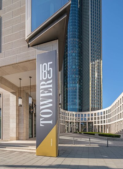 The express aim of Deka Investment as the owner is to advance TOWER185 in dialogue with the tenants and align it to its users’ needs. It was therefore only logical to render the office high-rise’s identity and qualities tangible with a new, holistic rebranding. TOWER185 now takes the stage with a striking new design language, new logo and claim.