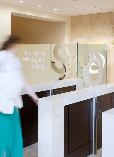 The lobby of TOWER185 is the dynamic hub in the daily life of our high-rise. And now, just to the right of reception, it also includes the new 24/7 snack station for TOWER185.